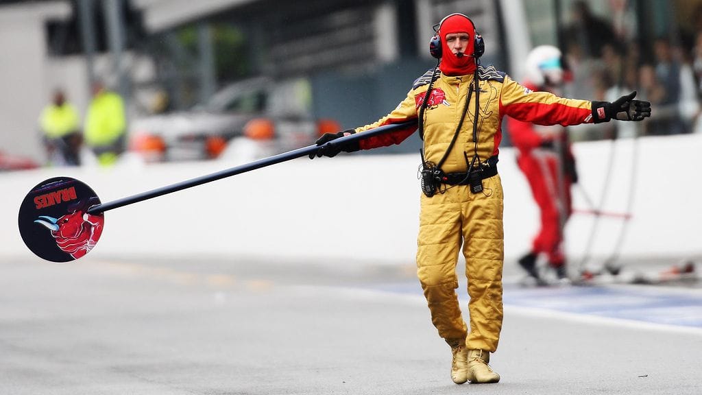 - Tikkarimiehet on korvattu valoilla, joiden mukaan toimitaan. Turvallisuuden lisäksi tässä on myös kyse kehityksestä. Tikkarimiehellä oli vaikea katsoa kaikkia muuttujia. Nyt kaikki menee elektronisesti ja vastuuta pystytään jakamaan, yksi tarkkailee liikennettä ja tieto tulee automaattisesti pulttipyssyistä, kun renkaat on kiinnitetty.