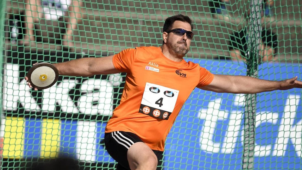 Kiekonheittäjä Frantz Kruger, 45, on kaikkein aikojen vanhin Kalevan kisojen voittaja.