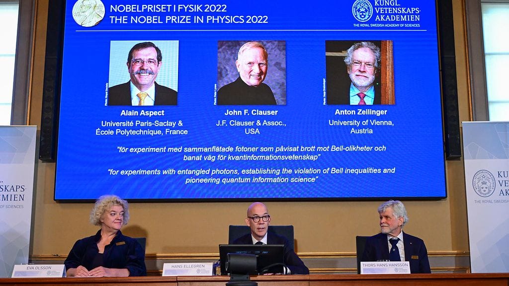 Fysiikan Nobel-palkinnon jakavat tänä vuonna kolme kvanttifysiikan tutkijaa. Ranskalainen Alain Aspect, yhdysvaltalainen John F. Clauser sekä itävaltalainen Anton Zeilinger saavat Nobelin tutkimuksistaan kvanttimekaniikan alalla.