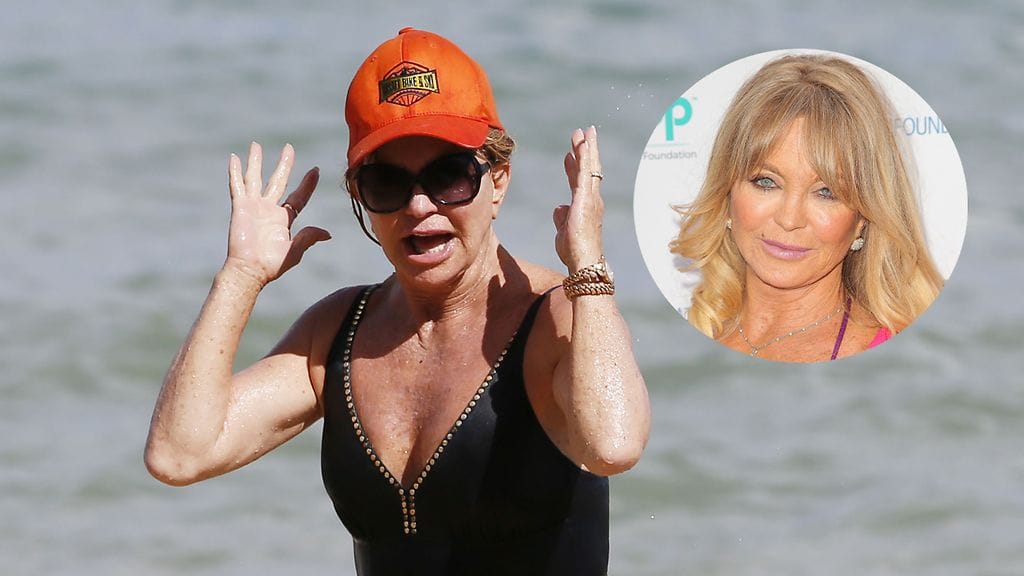 Hawn täytti viime marraskuussa kunnioitettavat 70 vuotta. Rantakuvista häntä ei ole uskoa ikäisekseen. Hawn näytti mustassa uimapuvussaan varsin solakalta ja kauniisti päivettyneeltä.