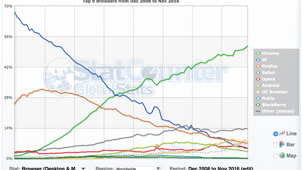 Chrome on nykyään selvästi suosituin selain. Sen osuuden on arvioitu olevan reilut 50 prosenttia, kun otetaan niin pöytäkoneet, tabletit kuin mobiililaitteetkin, kuten älypuhelimet.