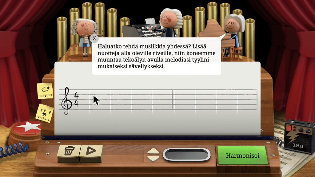 Käyttäjä voi luoda doodlesta avautuvasta toiminnosta oman melodiansa, jonka koneoppimista hyödyntävä järjestelmä harmonisoi Bachin tyyliin.