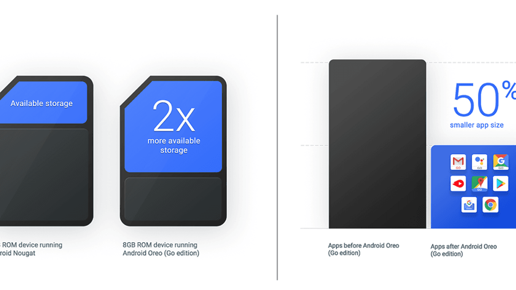Android Go -ohjelmassa käyttöjärjestelmä on optimoitu toimimaan laitteissa, joissa on RAM-muistia 512 megatavua tai yksi gigatavu.