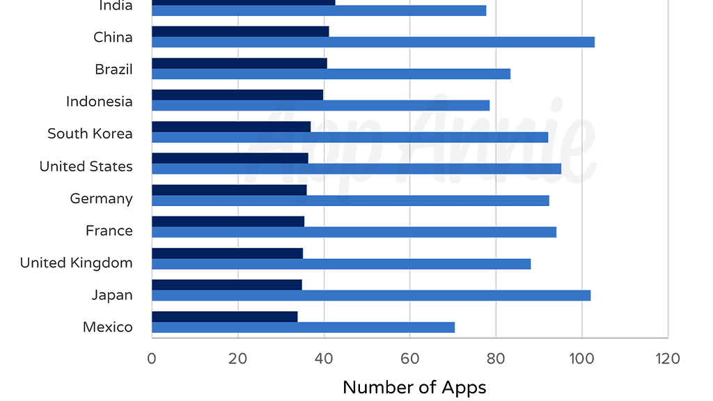 Eniten sovelluksia oli ladattuna japanilais- ja kiinalaiskäyttäjillä, joiden älypuhelimesta löytyi keskimäärin 100 sovellusta. Intialaiset puolestaan käyttivät aktiivisesti 40:tä sovellusta, joka oli listatuista maista eniten.