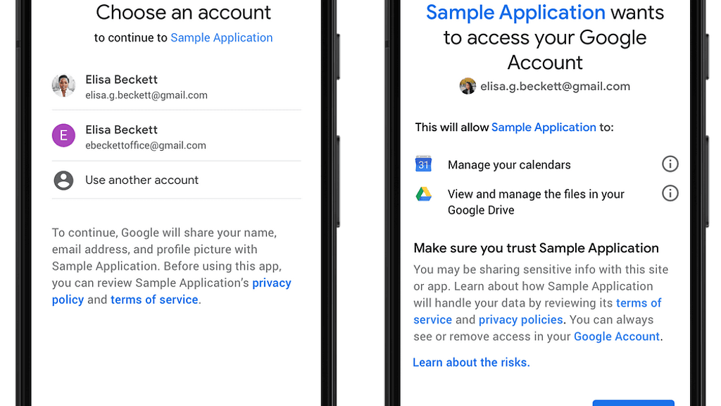 - Yksityiskohtaisemmat pyynnöt Google-tilin tietojen jakamiselle