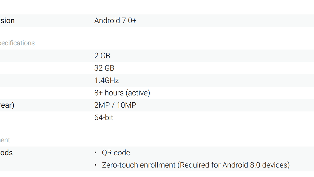 Yrityskäyttöön suositellaan jatkossa vain Googlen kriteerit täyttäviä laitteita. Vaadittujen, ajan myötä päivitettävien teknisten ominaisuuksien ohella Google edellyttää muun muassa suositeltavien laitteiden tukevan massakäyttöönottoa yritysten tarpeisiin, Android-tietoturvapäivitysten julkaisua 90 päivän sisällä Googlen julkaisusta ja vähintään kolmen vuoden ajan sekä SIM-lukitsemattomien laitteiden saatavuutta.