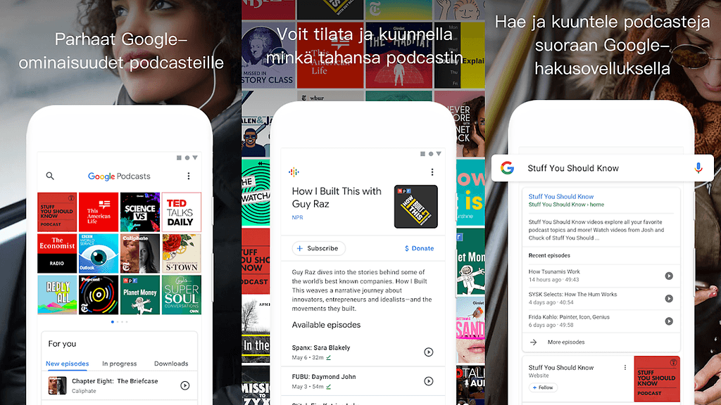 Google on julkaissut uuden Google Podcasts -sovelluksen, jonka kautta on helppo kuunnella itselle mieleisiä podcasteja. Sovelluksen kautta löytää niin suomalaisia kuin ulkomaalaisia podcasteja.