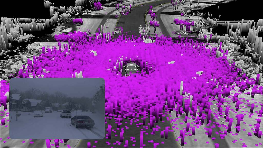 Lumisade voi myös häiritä paljon auton eri sensoreita, mutta koneoppimisen avulla auto pystyy erottamaan autot ja muut objektit lumisateen aiheuttamasta kohinasta.
