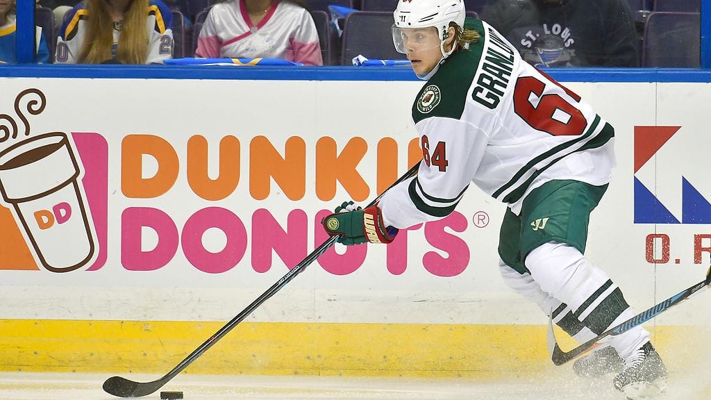Minnesota Wildin Mikael Granlundilla oli vaiheikas ilta 3–2-voittoon päättyneessä NHL:n harjoitusottelussa St. Louis Bluesia vastaan.
