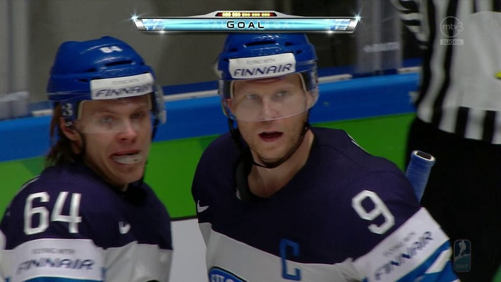 Suomen toinen maali Mikael Granlundin ja Mikko Koivun käsialaa.