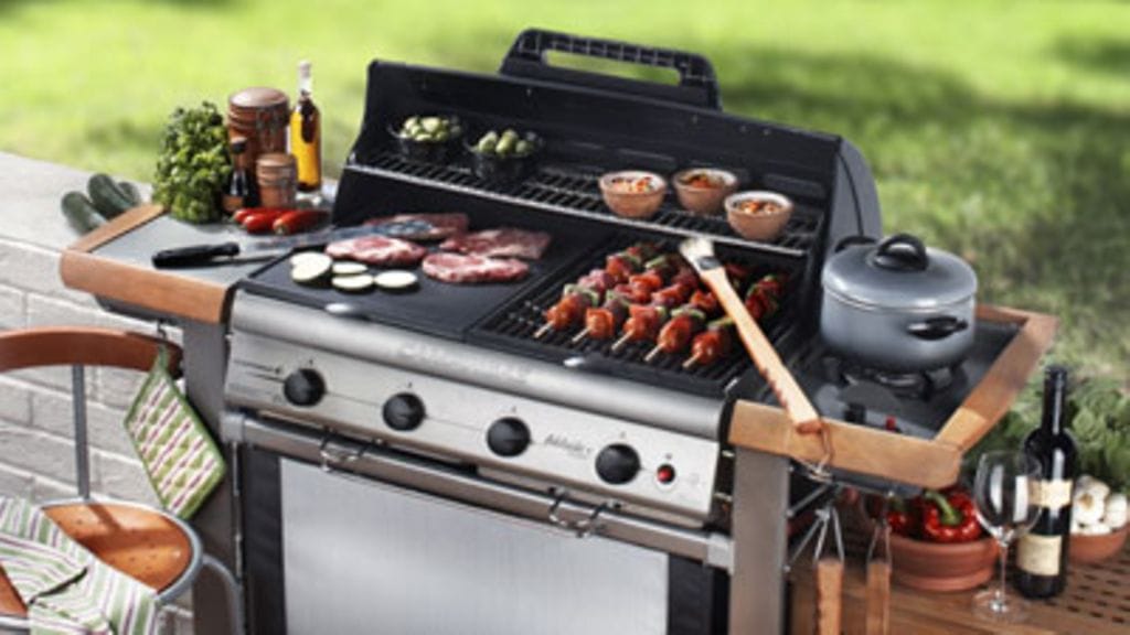 Grillivalikoimasta löytyy jokaiselle jotain – perusgrillistä huippuvarusteltuihin malleihin. Suurella grillausalustalla valmistuvat kerralla koko porukan ruuat, ja lämpöritilä antaa lisätilaa hauduttamiseen sekä ruokien lämpimänä pitämiseen. Kuvan Campingaz Adelaide -kaasugrillissä on erikseen sytytettävät ja säädettävät valurautapolttimet sekä piezosytytys. Tarvikkeille on runsaasti laskutilaa, koukkuja ja kiskoja. Tehokkaalla sivukeittimellä lisukkeet valmistuvat kätevästi grillailun lomassa.
