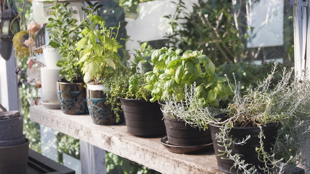 Basilikaruukku ikkunalaudalla pitää kärpäset loitolla.