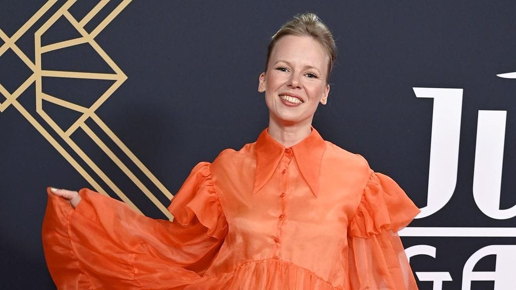Viime vuonna parhaan naisnäyttelijän pystin Tove-elokuvasta napannut Alma Pöysti saapui Jussi-gaalaan tänä vuona kierrätysteeman mukaisesti.