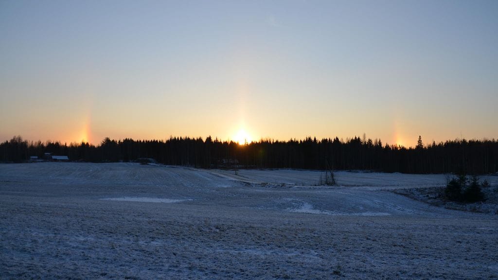 Haloilmiö syntyy, kun valo taittuu tai heijastuu ilmassa leijuvista jääkiteistä.