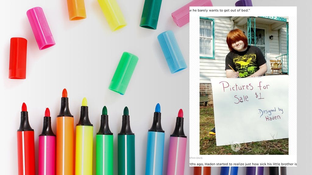 Amerikkalainen Haden, 10, on jo kuukausia myynyt taidettaan perheen kodin edustalla. Autistinen Haden ei kerää taskurahaa, vaan varoja sairaan veljensä auttamiseen, kertoo People-lehti. Poika tahtoo ostaa veljelleen leluja.