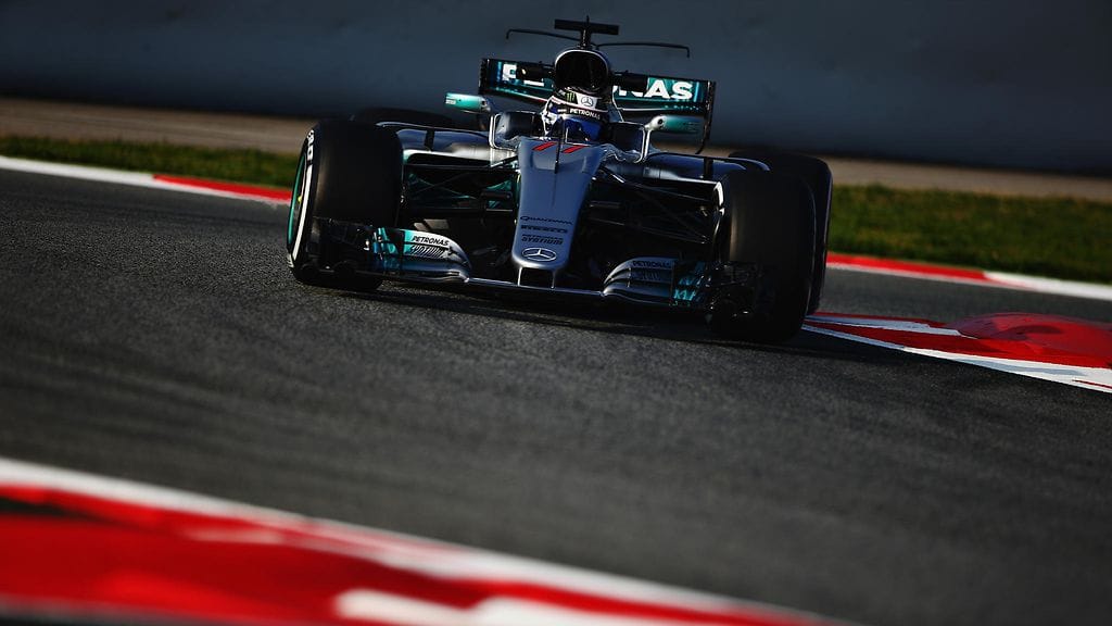 Lewis Hamilton ja Mercedes komeilivat listojen kärjessä F1-kauden ensimmäisten testien avauspäivänä. Täksi kaudeksi uusittujen autojen nopeudesta saatiin melkoinen näyte.