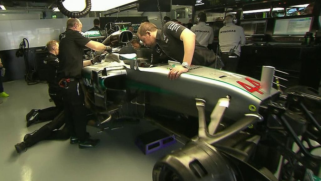 Mercedeksen Lewis Hamiltonin aika-ajo loppui lohduttomasti.
