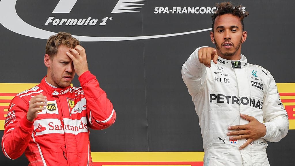 Lewis Hamilton tuntuu nauttivan F1-sarjan nykyisestä pistetilanteesta, jossa hän voi antaa ratkaisevan iskun Ferrarille ja Sebastian Vettelillä minä hetkenä hyvänsä.