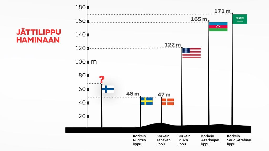 Haminaan rakennettava Suomen korkein lipputanko tulee nousemaan johonkin 40 - 70 metrin välille. Maailman mittapuulla lippu tulee kuitenkin jäämää kauas kärjestä.