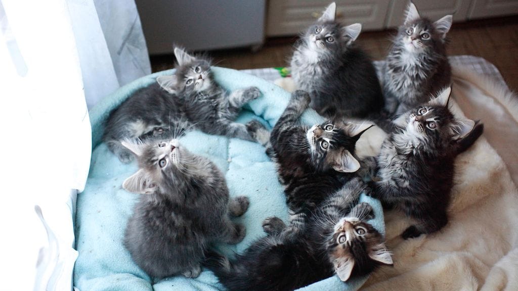 Maine coon -kissoja kasvattava Catsvill County jakoi hiljattain Instagram-tilillään videoita hiljattain syntyneistä suloisista harmaista kissanpennuista, joita kaikkia yhdistää uskomattoman ihmismäiset, jopa hieman yrmeän näköiset kasvot!