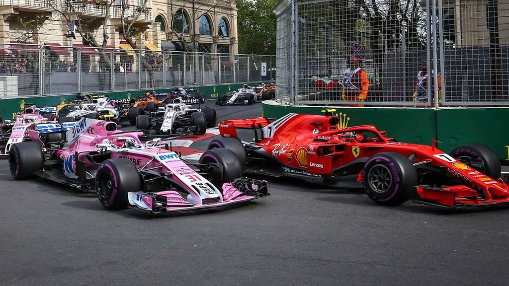 Force Indialla ajava Ocon oli pääsemässä Räikkösen edelle sunnuntain kisan ensimmäisellä kierroksella, mutta Kimi puski kolmannessa mutkassa sisäpuolelta takaisin edelle. Ocon sulki sisämutkan, jolloin kaksikko törmäsi toisiinsa.