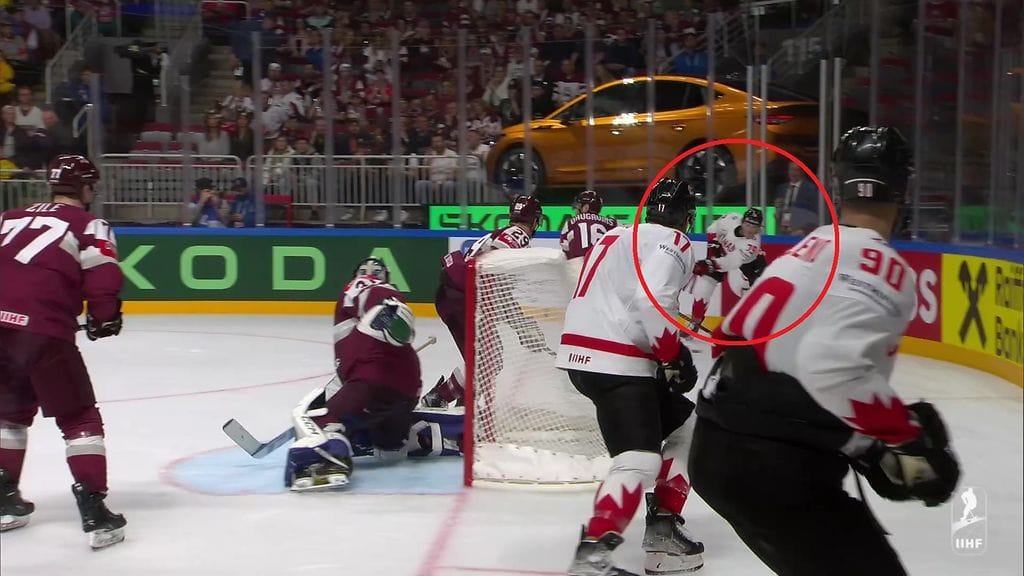 Kanada murjoo Latviaa MM-kisojen B-lohkossa. Kanukkien neljäs osuma oli todella erikoinen tapaus. Samuel Blais riuhtaisi aivan toivottomasta kulmasta kiekon maalille, ja latvialaistorjuja Arturs Silovs epäonnekseen imuroi kiekon verkkoon. Katso eriskummallinen osuma tässä jutussa olevalta videolta.