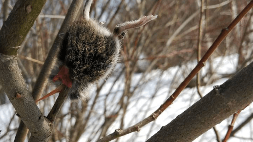 Pajunoksien keskeltä löytyi seivästetty metsämyyrä. Ensimmäisenä havainnon teki mukana ollut perheen koira.
