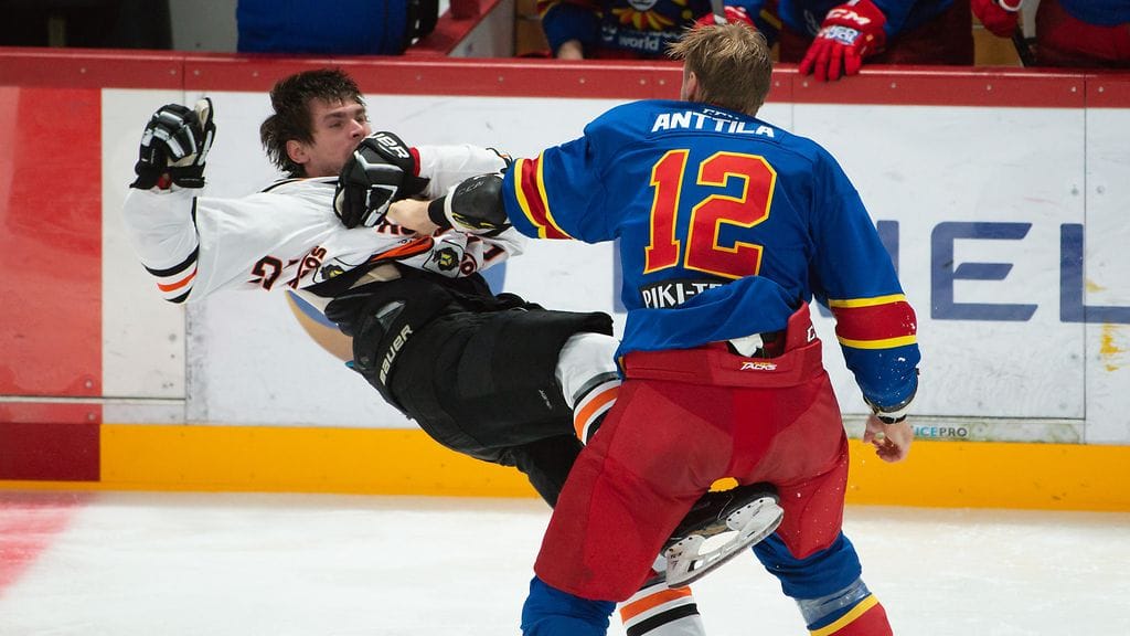 Helsingin Jokerien ja Amur Habarovskin välisen KHL-ottelun kolmannessa erässä rytisi, kun Jokerien kookas hyökkääjä Marko Anttila otti Amurin Pavel Dedunovista nyrkein mittaa.
