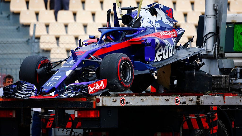 Toro Rosson Brendon Hartley tuhosi viikonloppunsa Espanjan GP:ssä jo lauantain vapaissa harjoituksissa ajamalla rajusti ulos.