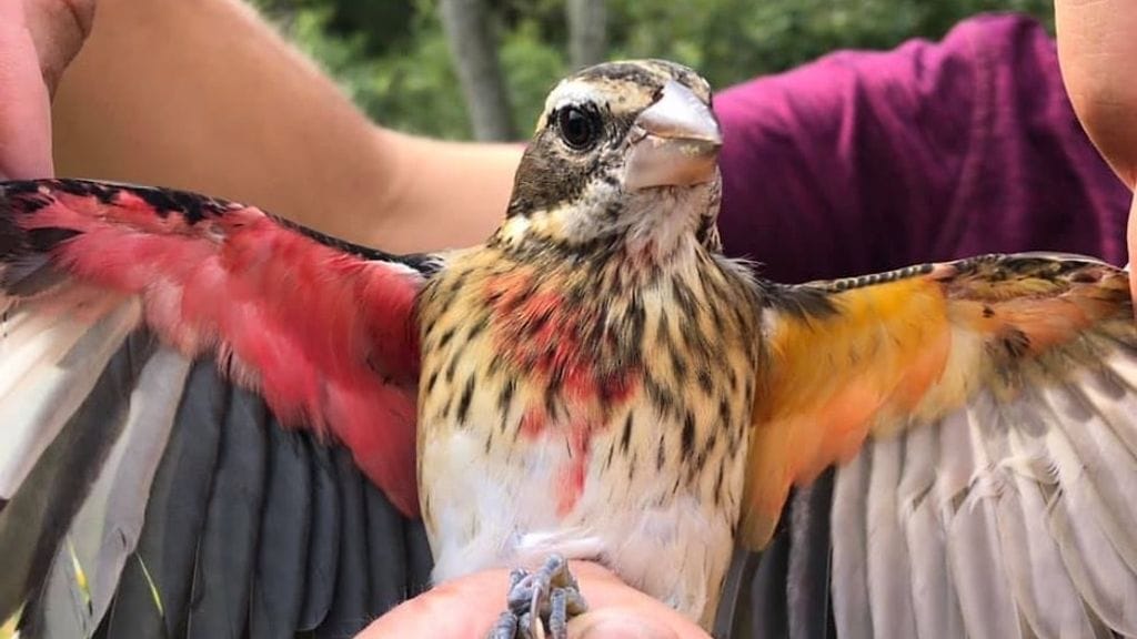 Naaras ja koiras punarintakardinaalit eroavat toisistaan pienillä värieroilla. Koiraalla on siivissä vaaleanpunaista, kun taas naaraalla siivet ovat keltaruskeat. Nyt löydetyllä linnulla siivet ovat eriväriset.