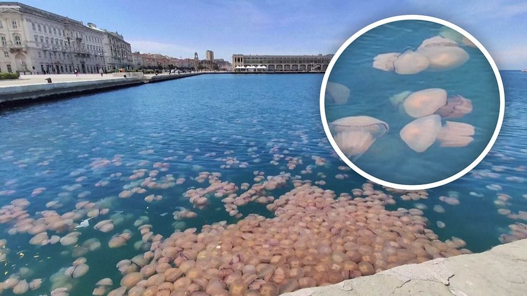 Italialaisen Triesten kaupungin asukkaat ihastelivat keskiviikkona rantaan ajautunutta suurta meduusojen joukkoa.