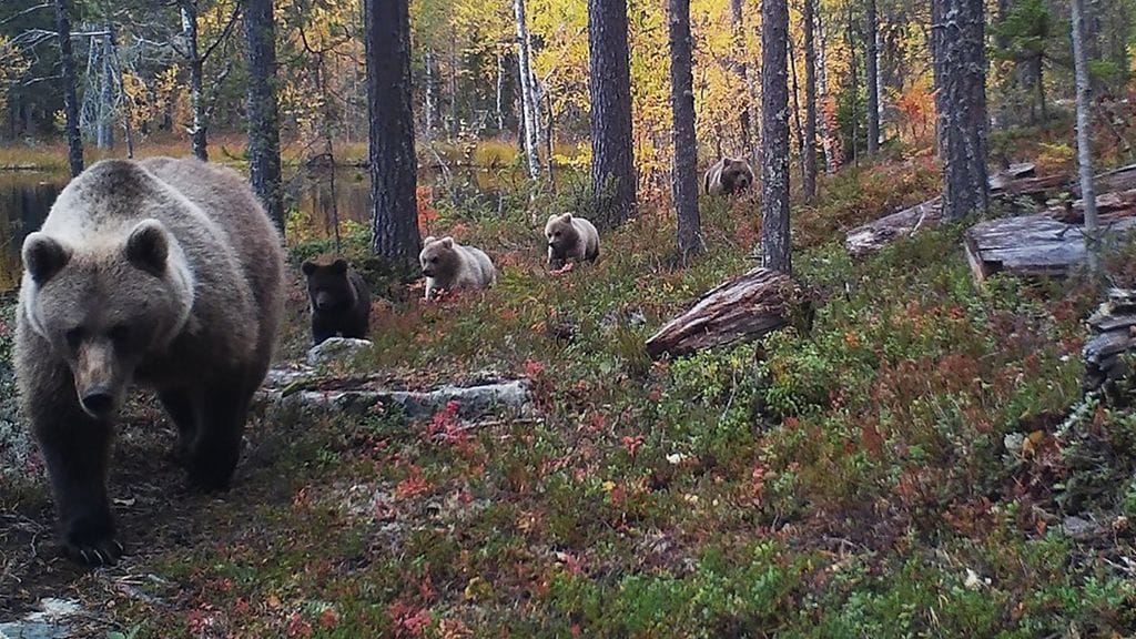 Rajavartiolaitoksen kameralle tallentui karhuperheen vaellus kohti talviunia.