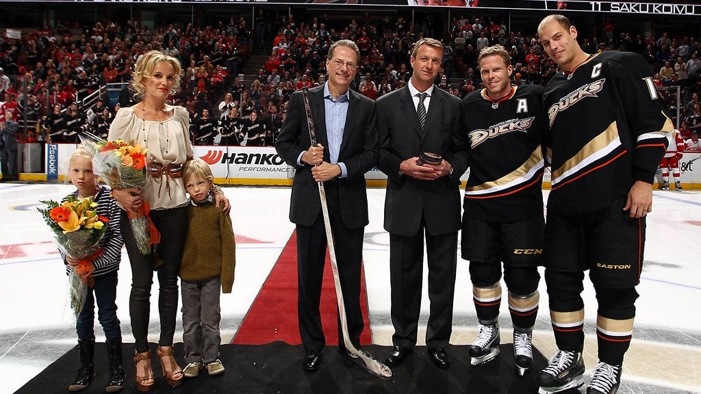 Anaheim antoi kunniaa Koivulle, joka sai täyteen tuhat NHL-ottelua. Koivun juhlissa oli mukana myös vaimo Hanna sekä lapset Ilona ja Aatos, joita harvemmin nähdään julkisuudessa.