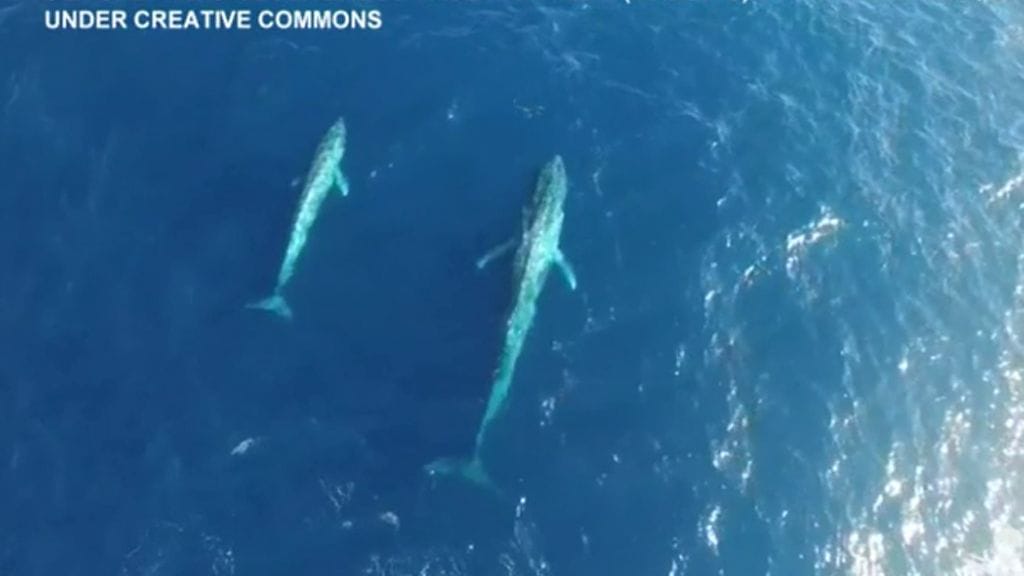 Harvalukuinen sinivalas on saatu tallennettua videolle, poikasensa kanssa.