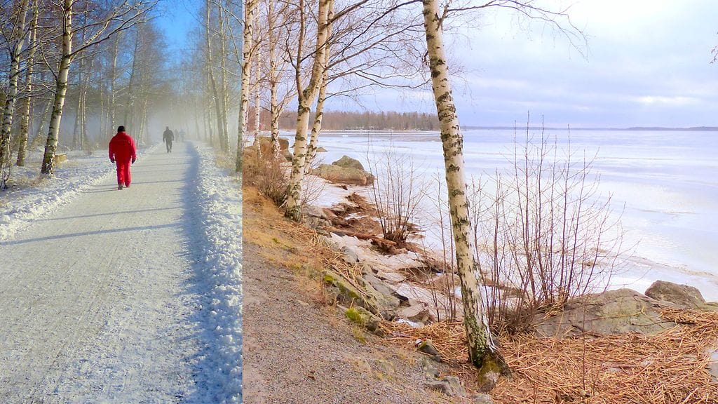Vaasalaisen Matti Hietalan ottamissa valokuvissa viime viikon upea talvimaisema vaihtui lähes lumettomaan näkyyn nopeasti. Lumikuvat on otettu viime viikon keskiviikkona, joten kuvien välissä on vain viitisen päivää.