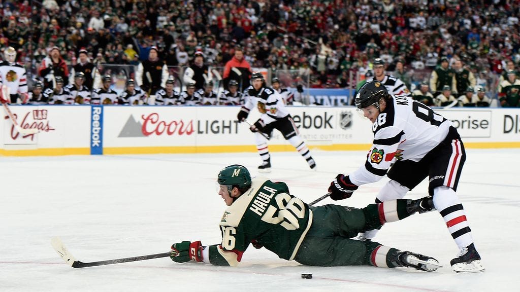 Erik Haula iski yön NHL-kierroksella kauden seitsemännen maalinsa erikoisella tavalla. Kiekko ei päätynyt koskaan Chicago Blackhawksin maaliin.