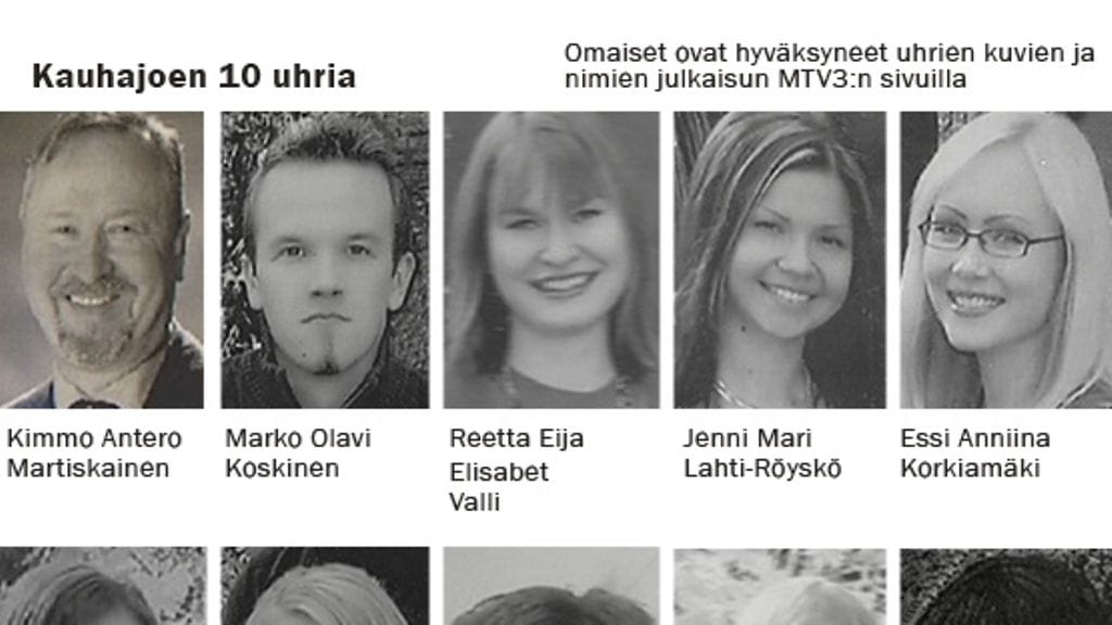 MTV3:n uutiset julkaisee Kauhajoen koulumurhien uhrien nimet ja kuvat.