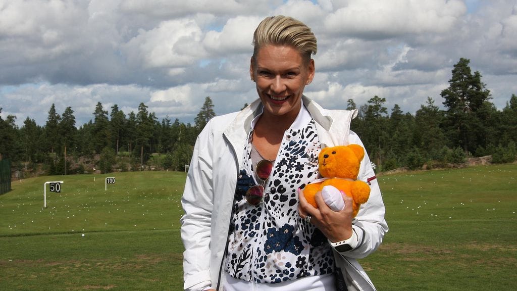 Rintasyöpää sairastava Heidi Sohlberg oli mukana Hirsalan Kummit Golf -tapahtumassa tänään keskiviikkona.