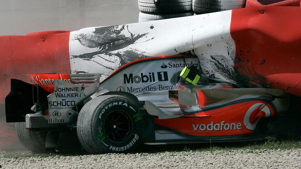 Kovalainen menetti McLareninsa hallinnan Espanjan GP:ssä huhtikuussa 2008. Hänet oli juuri kutsuttu varikkokäynnille tallikaverinsa Lewis Hamiltonin pysähdyttyä ensin.