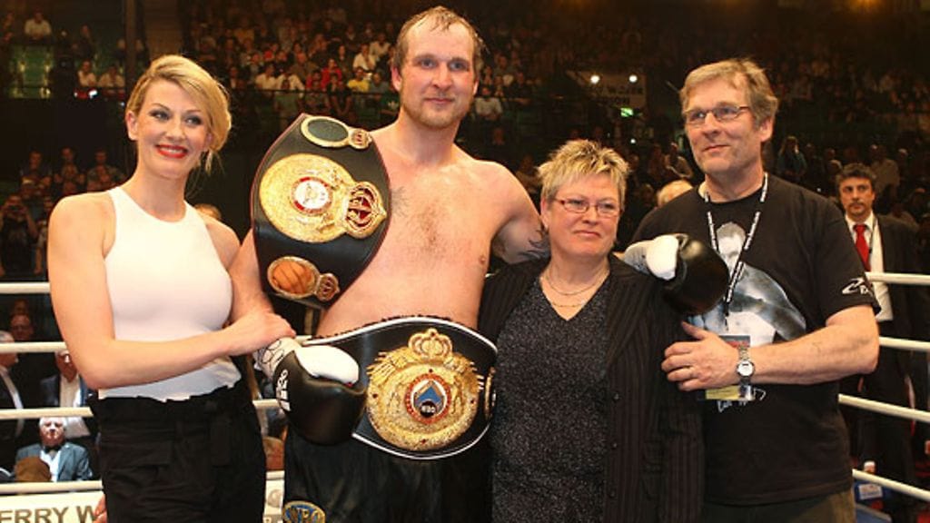 Helenius sai onnittelupusun vaimoltaan Sandralta tyrmättyään nigerialaisen Samuel Peterin. Myös vanhemmat Stina ja Karl olivat mukana juhlimassa Heleniuksen valloittamia Intercontinental-mestaruusvöitä.
