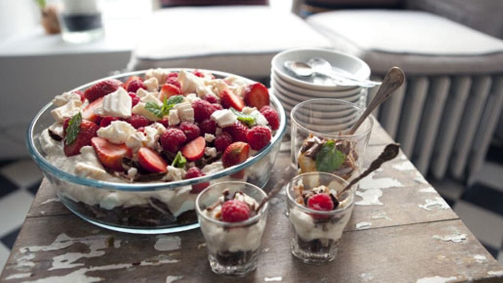 – Kun pitää muutamia hätävara-aineksia kaapissa, yllätysvieraille on tarjota muutakin kuin kahvia. Jäätelö on tietenkin helppo tarjottava, mutta lisäksi voi pitää varalla kuohukermaa ja tuorejuustoa tai rahkaa sekä muutamaa keksipakettia. Niistä syntyy helposti ja nopeasti juustokakkumainen herkku.