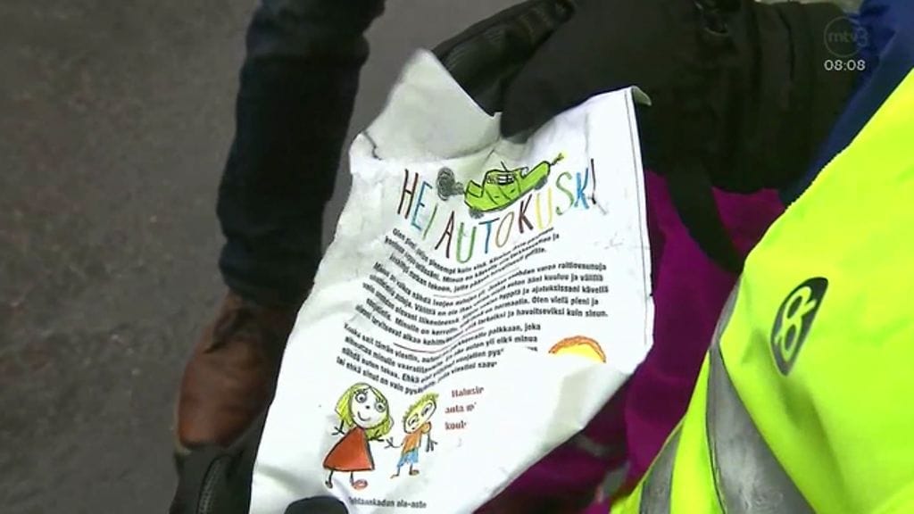 Koulussa keksittiin luova tapa huomauttaa asiasta. Muun muassa Leksa ja Aurora ala-asteelta ovat jakaneet itse tekemiään sakkolappuja autoilijoille.