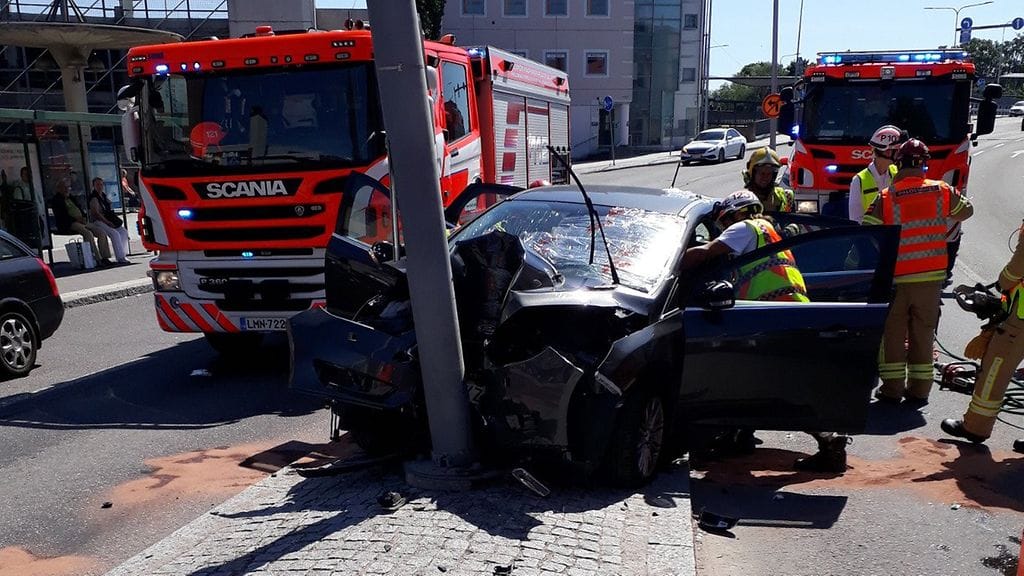 Helsingin Malmilla on sattunut liikenneonnettomuus, jossa henkilöauto ajoi päin lyhtypylvästä.