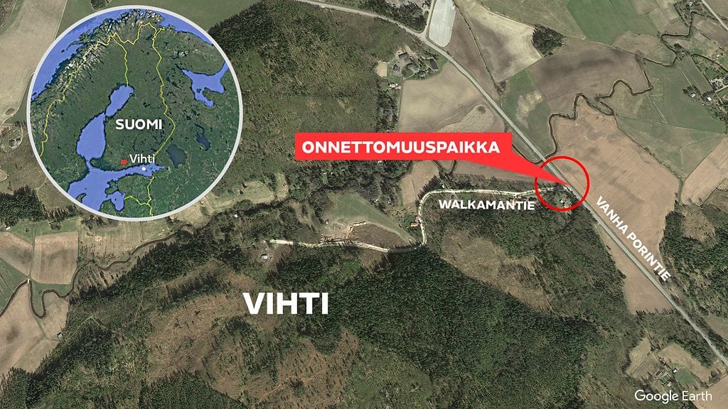 Vihdissä sattui liikenneonnettomuus kello 12.40, jossa kuoli kaksi ihmistä.