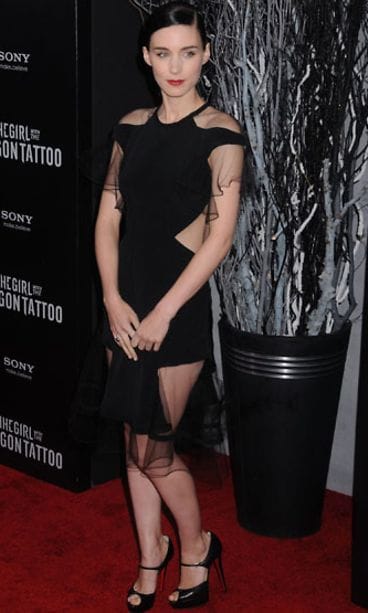 Rooney Mara viihtyi tähdittämänsä The Girl With The Dragon Tattoo -elokuvan ennakkonäytöksessä rohkeassa mekossa.