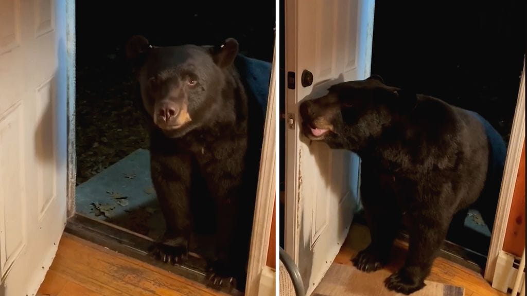 New Jerseyssä syrjäisellä asuinalueella asuva nainen kuvasi videon, kuinka karhu sulkee hänen ovensa.