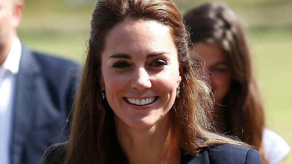Catherine valitsi tilaisuuteen ylleen sinivalkoiset prinssihousut, valkoisen puseron ja tyylikkäästi leikatun laivastonsinisen jakun. Tyylin kruunasi korkeat kiilakorot.