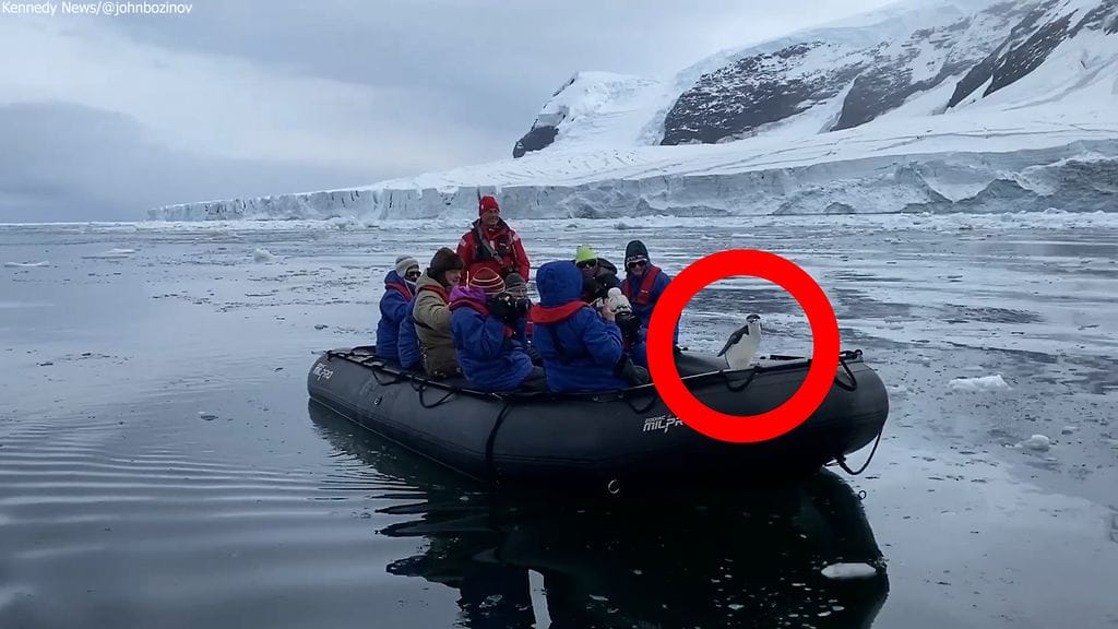 Veneen kyytiin hyppäsi utelias pingviini, joka pomppi innokkaana kannella kuin vanha tuttu. Lintu viihtyi veneen kyydissä silminnäkijöiden mukaan 10 minuuttia.