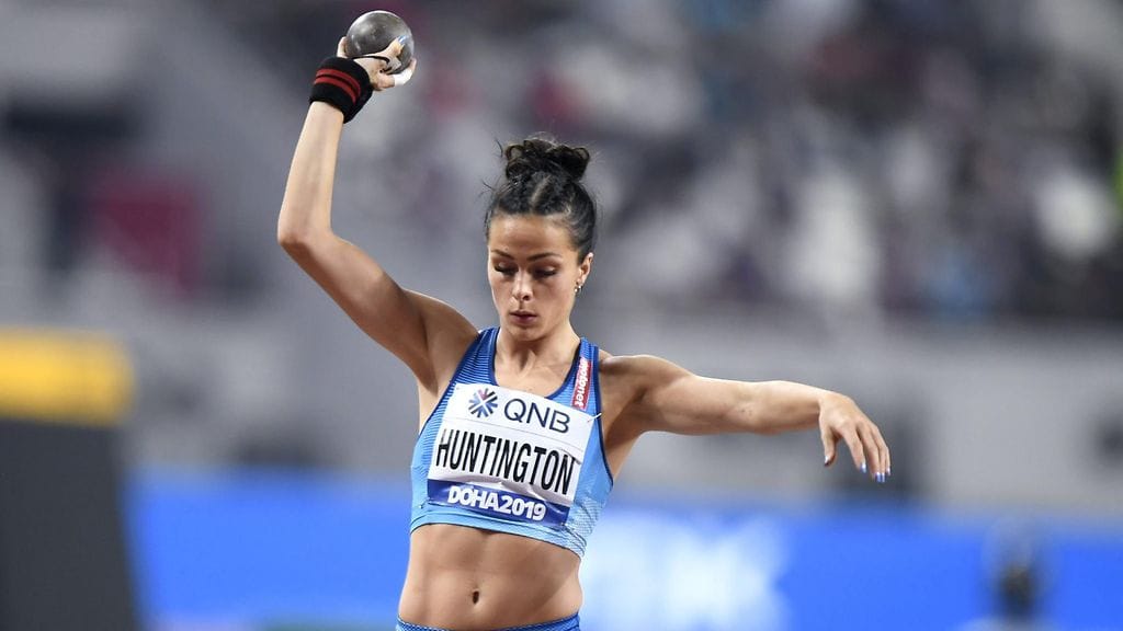 Maria Huntington venyi hyvään tulokseen seitsenottelun kuulantyönnössä yleisurheilun MM-kisoissa Dohassa keskiviikkona.