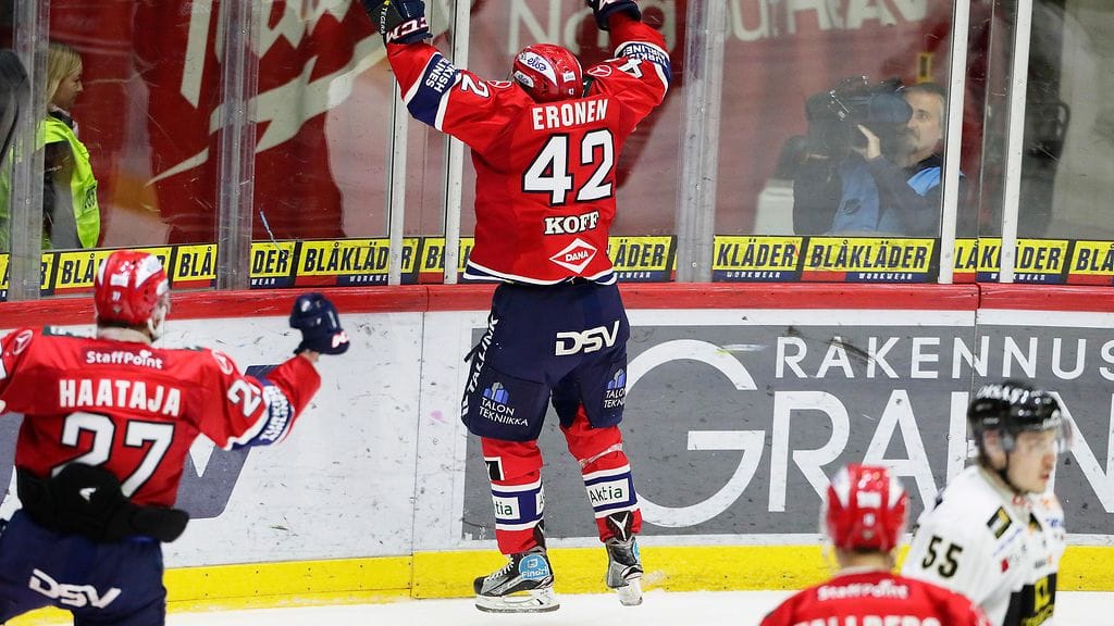 Jääkiekon SM-liigassa Teemu Eronen nousi HIFK:n isoksi sankariksi, kun kuudennessa välieräottelussa hän täräytti 4-3-jatkoerämaalin Kärppien verkkoon. Näin ollen finaalipaikka ratkotaan joukkueiden välillä seitsemännessä kohtaamisessa.